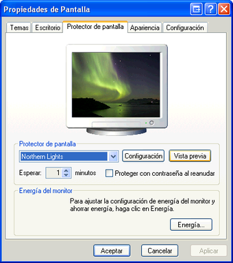 Una vez instalado Great Northern Lights Screensaver, deberás seleccionarlo como tu protector de pantalla por defecto en los ajustes de tu PC.